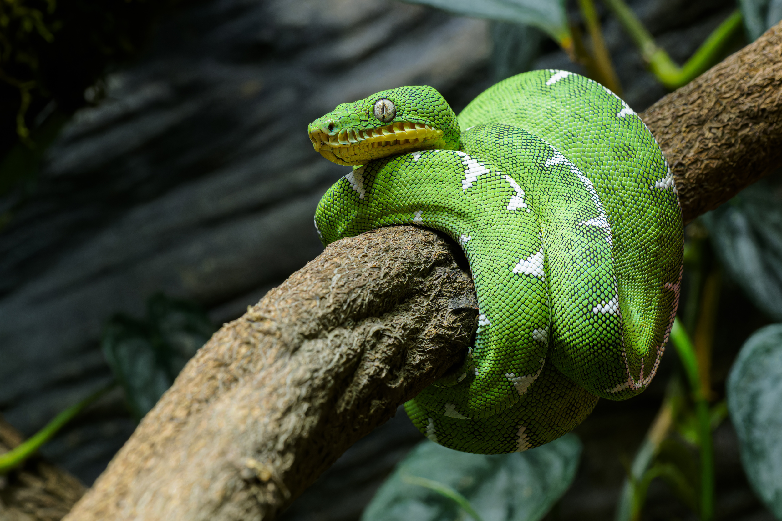 A delicate species native to the Amazonian lowlands, Emerald Tree Boas have the proportionally longest teeth of any non-venomous snake....