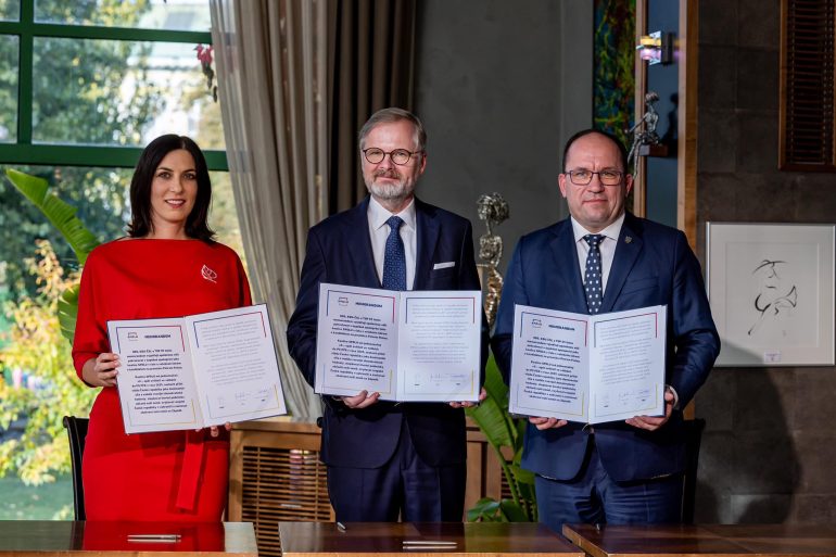The leaders of the three parties in the governing Spolu (“Together”) coalition, the Civic Democrats (ODS), Christian Democrats (KDU-CSL) and...