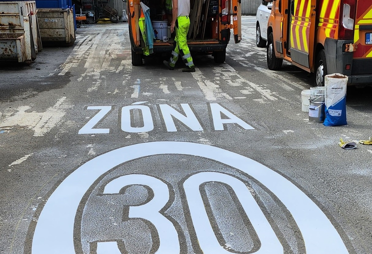 Together with resident parking, 30 km/h zones are gradually being introduced in Brno streets, marked with horizontal speed limit signs...