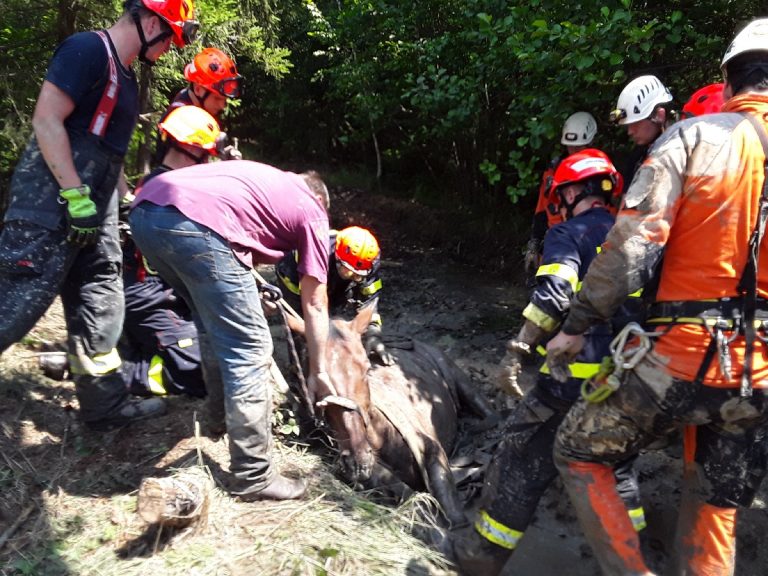 Brno, Jul 16 (BD) – On Wednesday, at around 11am, the South Moravian Fire Department (HZS JmK) received a report that a man had got stuck under his horse in the woods near the village of Ujezd u Rosic. By the time the firefighters arrived, the man had managed to get himself out of the situation, but the horse remained lying in a “swampy forest path,” said HZS JmK spokesman Jaroslav Mikoška.