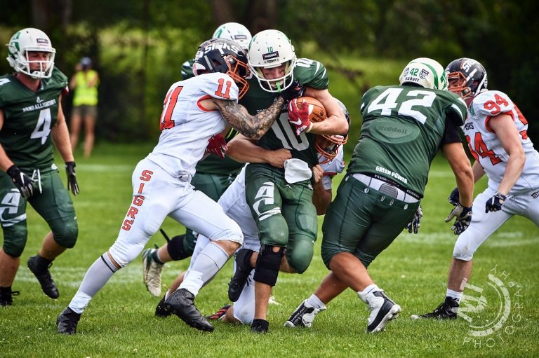 David Kilian, who had scoring runs of 7 yards, 32 yards and 1 yard, was part of a solid, multi-pronged running attack in the Alligators win. Jan Nestr added scoring runs of 33 and 22 yards. They will need to bring their A game on Sunday, because the Sigrs defense has allowed a league-low 49 points.