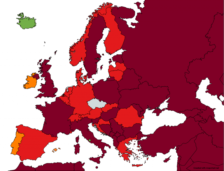 Czech Rep., Feb 15 (BD) [Updated Mar 29. 2pm] – The Czech Ministry of Health updates the list of countries on a regular basis according to data provided by the European Center for Disease Prevention and Control (ECDC). Entry requirements vary by country of origin, classified into the categories: green, orange, red, dark red and black.
