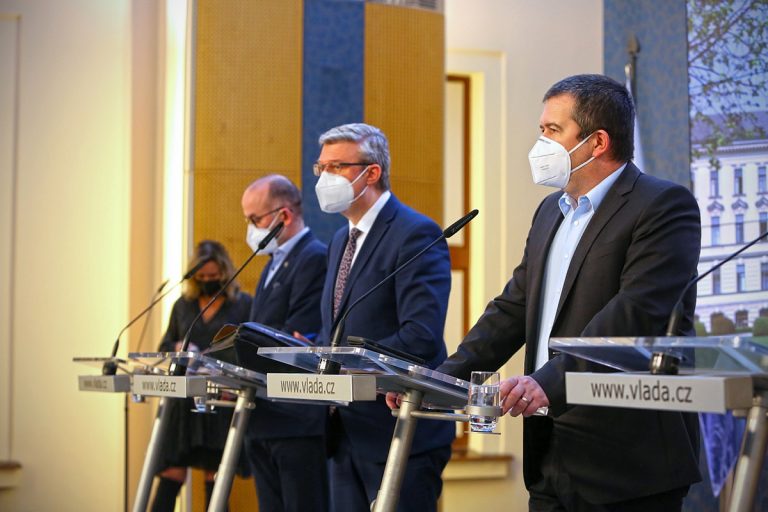 On Monday the government agreed to request an extension of the state of emergency, expand mandatory Covid-19 testing to small companies, self-employed people and non-profit organisations, and reward healthcare workers for their extraordinary work during the pandemic. Photo: Press conference after the cabinet meeting on Monday, March 22nd. Credit: Vlada.cz.