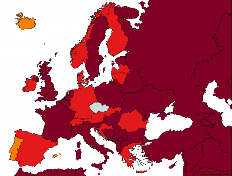 Czech Rep., Apr 6 (BD) – The Czech Ministry of Health has updated the country-specific travel regulations and risk index, based on data provided by the European Center for Disease Prevention and Control (ECDC). Entry requirements now vary by country of origin, classified as green, orange, red, dark red and black, as well as the mode of transport used to enter the country.