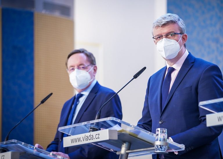 From Monday, May 10th, all remaining retail sectors and most services will be permitted to reopen. Respirators will no longer be required outdoors unless in large crowds, and in seven regions, pupils and students will return to schools. The changes were discussed at a cabinet meeting yesterday, and the final details will be approved on Thursday. Photo: Minister of Health Petr Arenberger and Minister of Industry and Trade Karel Havlíček at the press conference on May 3. Credit: Vlada.cz.