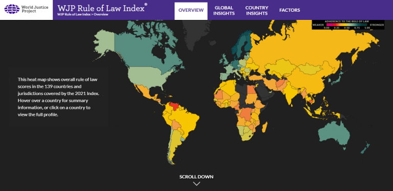 A new index analysis comparing the “rule of law” around the world shows a deteriorating trend globally, with three quarters of the 139 countries surveyed recording a worsening in this area. Photo Title: Rule of Law Index / WJP.