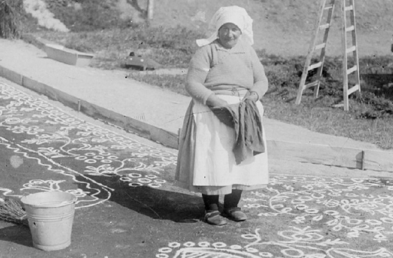 The tradition occurs mainly at traditional festivals, weddings, and folklore festivals, when the unusual “street artists” create a mixture of flour and sand that is poured onto the wet road, creating a type of ornament whose purpose is only decorative – which remains intact for a few weeks.