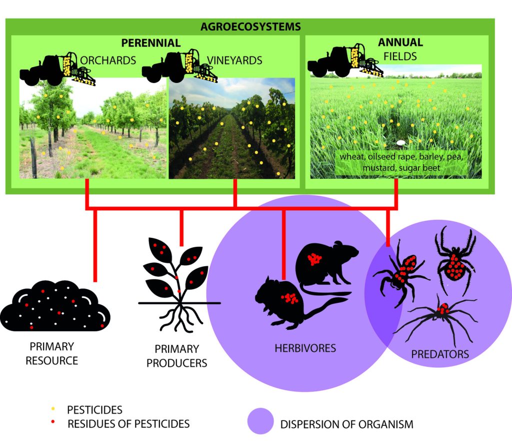 One of the most hazardous substances is carbofuran and its metabolites, which are poisonous and can prove lethal to vertebrates, and were detected in rodents and spiders on most cultivated perennial and annual crops during the two-year sample collection. “In the Czech Republic, there are deaths of birds of prey caused by carbofurans every year, often caused by direct ingestion of these substances through poisoned prey,” said Košulič.