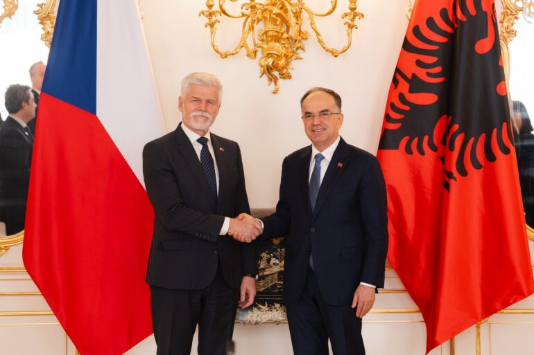 Albanian President Bajram Begaj met Czech President Petr Pavel, outgoing Prime Minister Petr Fiala, and other Czech officials on an...
